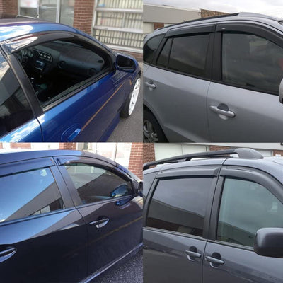 H.I.C. Window Visors allow drivers to optimize air circulation in the vehicle while reducing wind noise and keeping the elements out. Made from durable, tinted cast acrylic, it is designed to block out the rain and keep the interior of the vehicle dry. Exterior Visors are easily mounted on the door frame using the pre-attached 3M adhesive tape or included mounts, no drilling required.  Priced per complete set of 4 visors