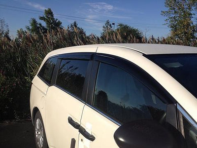 H.I.C. Window Visors allow drivers to optimize air circulation in the vehicle while reducing wind noise and keeping the elements out. Made from durable, tinted cast acrylic, it is designed to block out the rain and keep the interior of the vehicle dry. Exterior Visors are easily mounted on the door frame using the pre-attached 3M adhesive tape or included mounts, no drilling required. Priced per complete set of 4 visors